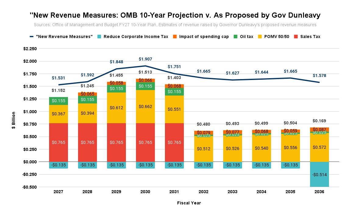 After already having set a dollar target for the “New Revenue Measures” required to balance the state’s budget over the next ten years in the Administration’s Fiscal Year (FY) 2027 Budget Overview and 10-Year Plan (10-Year Plan) published in December, and teasing in a press availability on Wednesday that he would discuss at least one significant segment - a “seasonal sales tax” - in his State of the State speech last night, Governor Mike Dunleavy (R-Alaska) both surprised and disappointed by failing to provide any details of his proposed fiscal plan in his speech.